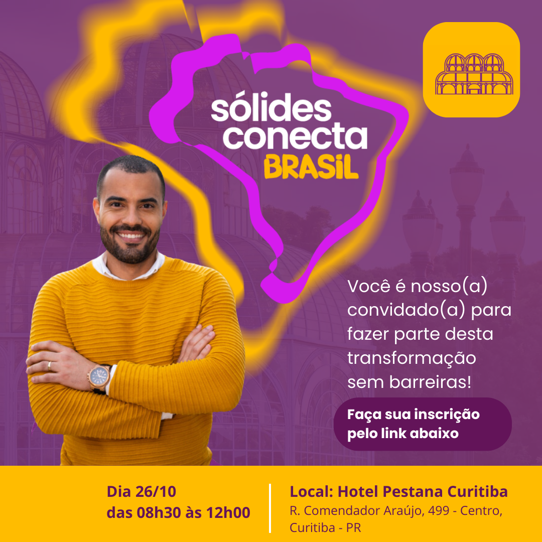 O Sólides Conecta Brasil é um evento 100% PRESENCIAL e será uma imersão em estratégias e conhecimentos sobre processos e etapas para otimizar a jornada do seu colaborador, da Gestão de Pessoas para todos os negócios do Brasil. 🤩